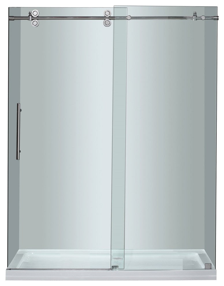 Aston 60"x75" Completely Frameless Sliding Shower Door, Base,Chrome, Center