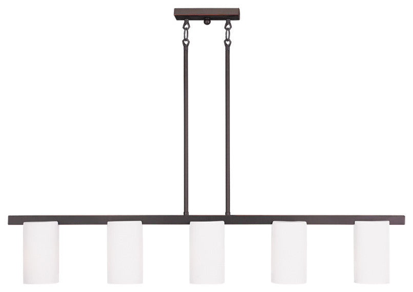 The minimalist Astoria collection draws the eye to the soft, warm glow of the light emitted from the cylindrical satin opal etched glass shades available in a subdued brushed nickel or soft olde bronze.