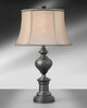 Standard Lamp Specifications for #GM985:Product Type: Table LampHeight: 28"Finish: Gun MetalConstruction: SteelSocket: (1) Aluminum 3-way Med. Base Type A 150W Max socket(s). (Bulb(s) not included)Switching: (1) 3-way turn knob switch(es) located on the socket.Cord: 6''5'' (from base) long brown SPT-2 cord set with a 2 prong polarized plug.UL/CUL and/or ETL listed: YesHarp Size: 8 inches (including the saddle)Standard Packing: 2 per carton (shade packed separately).Lamps & Shades per SKU: 1Lamping: (1) Aluminum 3-way Med. Base Type A 150W Max socket(s).Shade Size and Description: Grey Silk Drum bell shade with Black underfold trim measuring 12" x 16" x 10" w/ .5" drop (Top x Bottom x Slant).Bulb Included: NoMaterial Description: constructed from polished, plated, and lacquered steel.