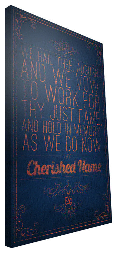 Keep your college pride alive in your home with this Auburn University Song canvas print. This canvas print is 16"x24".