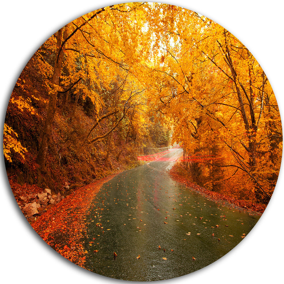 Bring Contemporary Abstraction to your home with this large Circle Metal wall art. This Autumn Light Trails on Road Metal Artwork makes it the focal point of any room or office.