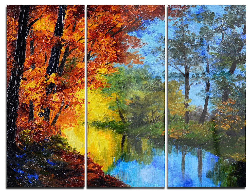 "Autumn Reflecting in River" Glossy Metal Wall Art, 3 Panels, 36"x28"
