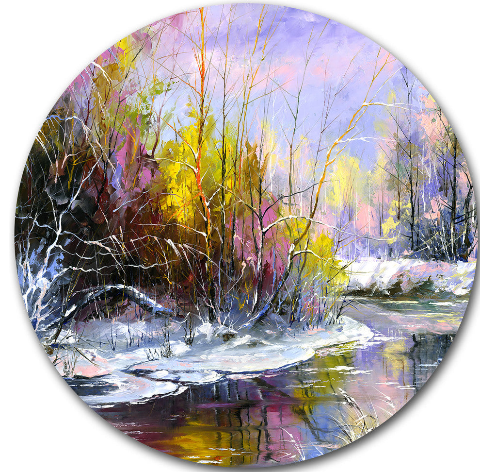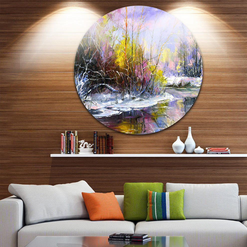 Autumn River, Landscape Disc Metal Wall Art, 36"