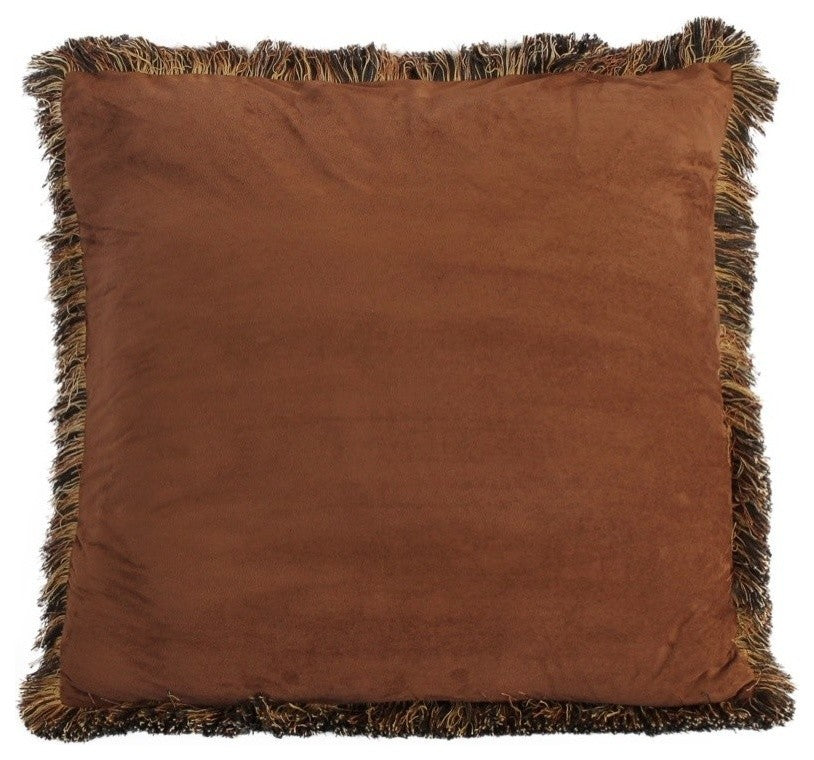 Accessorize your master bed or guest bed with the Autumn Trails Euro Sham from Carsten. Made with a beautiful chestnut brown suede fabric, this pillow has a brush fringe around the edge in various brown hues that add both texture and interest to the overall look of the pillow.