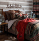 Grab your pack ''cause it''s time to explore the uncultivated wonder of the woods! Our Backwoods bedroom collection is both regal and rural, with playful patterns of leaves, canoes, and oars contrasting with the silent silhouettes of bear and elk. The natural and homey hues of brown and green, red and tan are warm and welcoming, and the coordinating pillows, throws, and drapes add a splash of color and class. If you''re on a quest for comfort, all trails lead to the Backwoods!King: Comforter: 110" x 96"; Bed skirt: 76" x 80" x 15"; 2 shams: 20" x 37"; 1 pillow: 14" x 26"