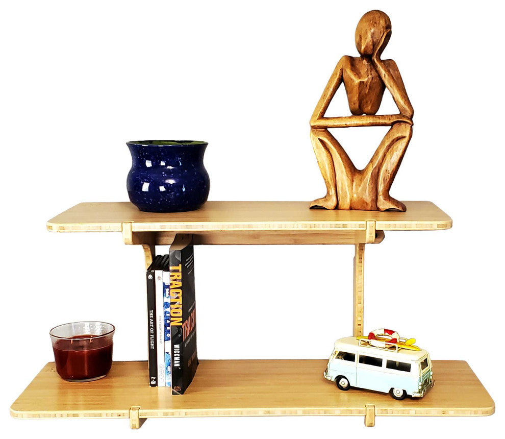 Bamboo Floating Shelf - Floating Wall Shelf, Double Shelf