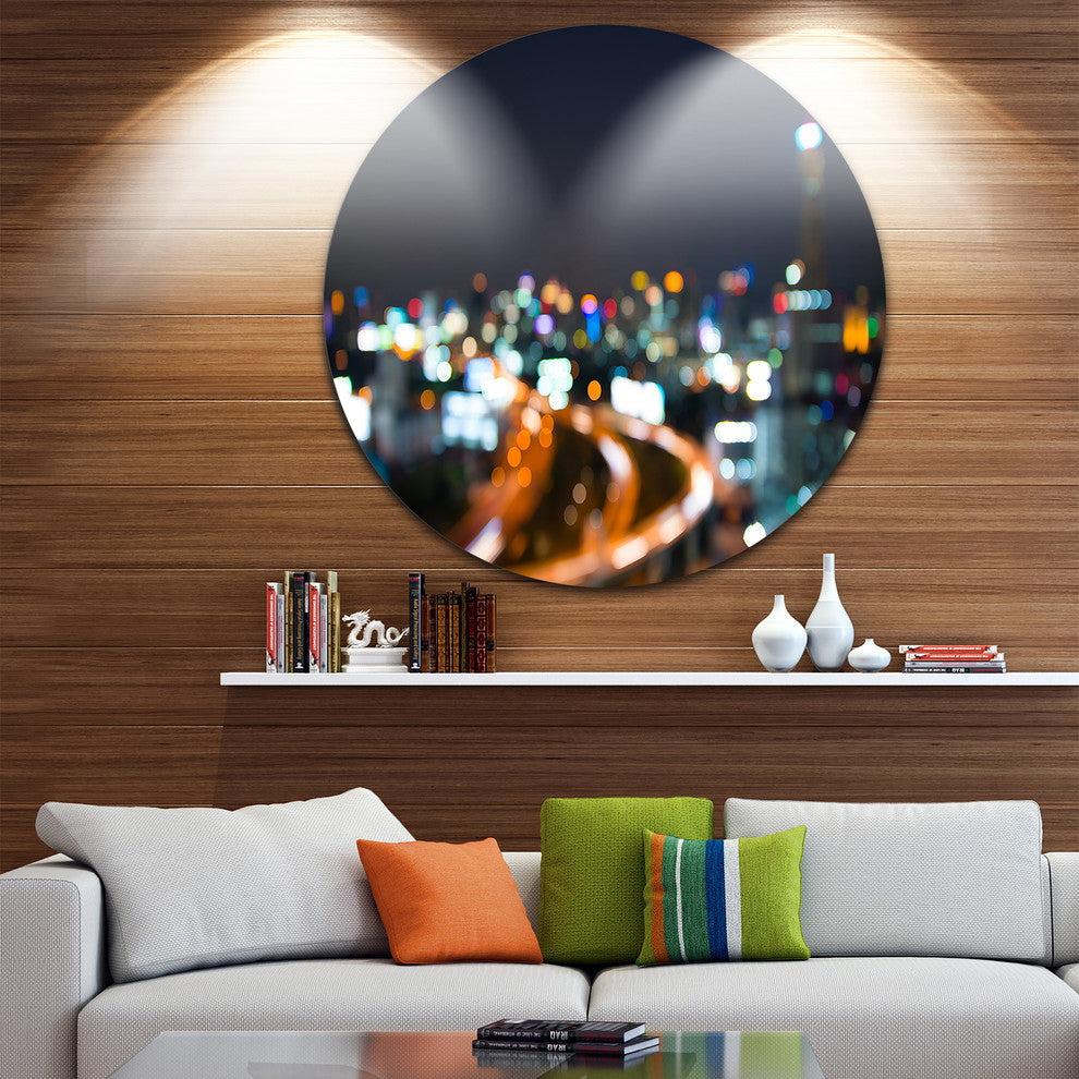Bring Contemporary Abstraction to your home with this large Circle Metal wall art. This Bangkok City at Twilight Metal Artwork makes it the focal point of any room or office.