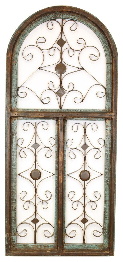 This architectural window is great for any room including the outdoors. If you wish to hang it outside, a very thick coat of polyurethane sealer will keep it intact. Please remember that this is all handmade of wood and iron and will be one of a kind. It is available in the following colors - red ,white and turquoise.