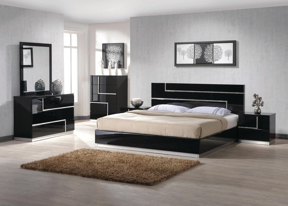 This Barcelona 5 drawer chest has all you need for a modern look and fully functioning piece of furniture for your bedroom. Its special features a high gloss black color, and decorated with sparkly rhinestones, 5 spacious drawers and all comes with metal side rails. All items has a chrome base to add the contemporary touch you are looking for.Dimension: 31"L x 20"D x 45"HColor: Black lacquer with rhinestonesIncludes: One (1) 5 Drawer ChestMaterial: Poplar Wood, MDF, High Gloss with Extra CodingAssembly not required