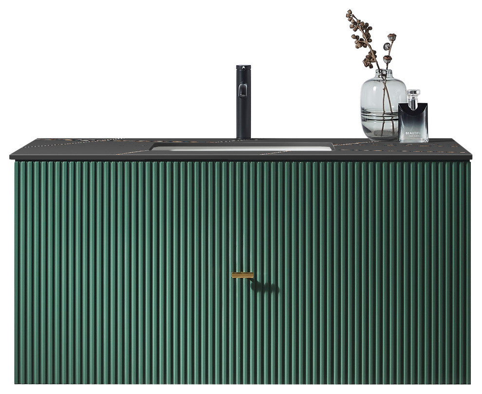 BARCELONA Wall Mount Modern Bathroom Vanity, Forest Green, 42", Black Countertop