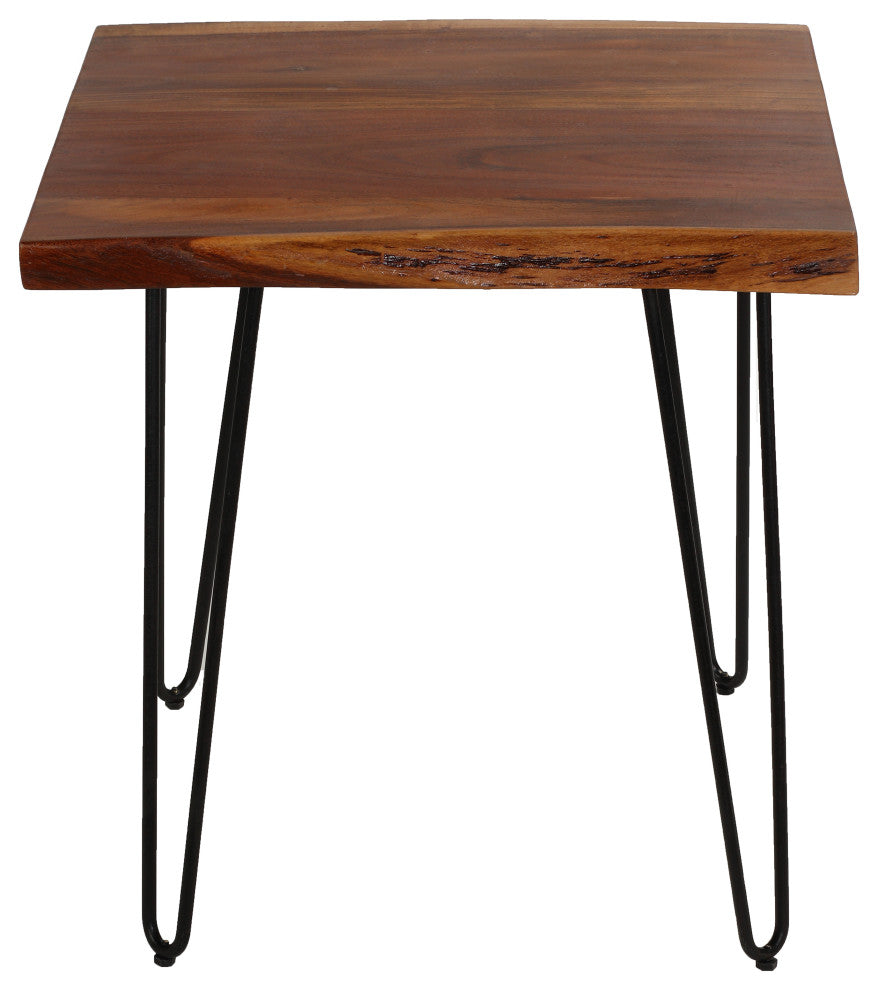 Bare Decor Nunavut Square End Table Wood Live Top With Black Metal Hairpin Legs