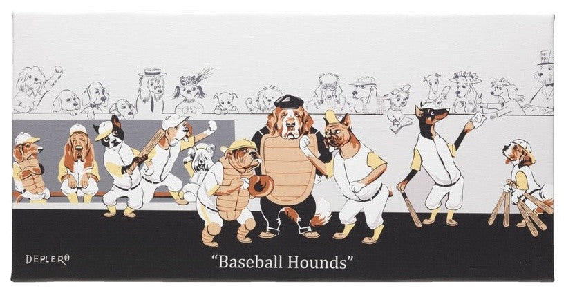 Who let the dogs out? More like who let the dogs in! This sophisticated piece will class up your home bar and ensure guests have a howling good time. This canvas gallery print measures 20 inches wide by 1.5 inches deep by 10 inches tall.