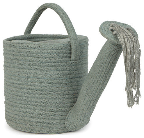 This is a unique artisan piece, sustainably handcrafted in our own factory using natural fibers and upcycled materials, non-toxic dyes, and a firm commitment to the planet and people. From the design process, to material sourcing and production, we always choose options that minimize waste and ensure long-lasting designs. This basket is handwoven using recycled PET bottles to give it rigidness and durability. Watering can basket in vintage blue with cotton strings details simulating water.