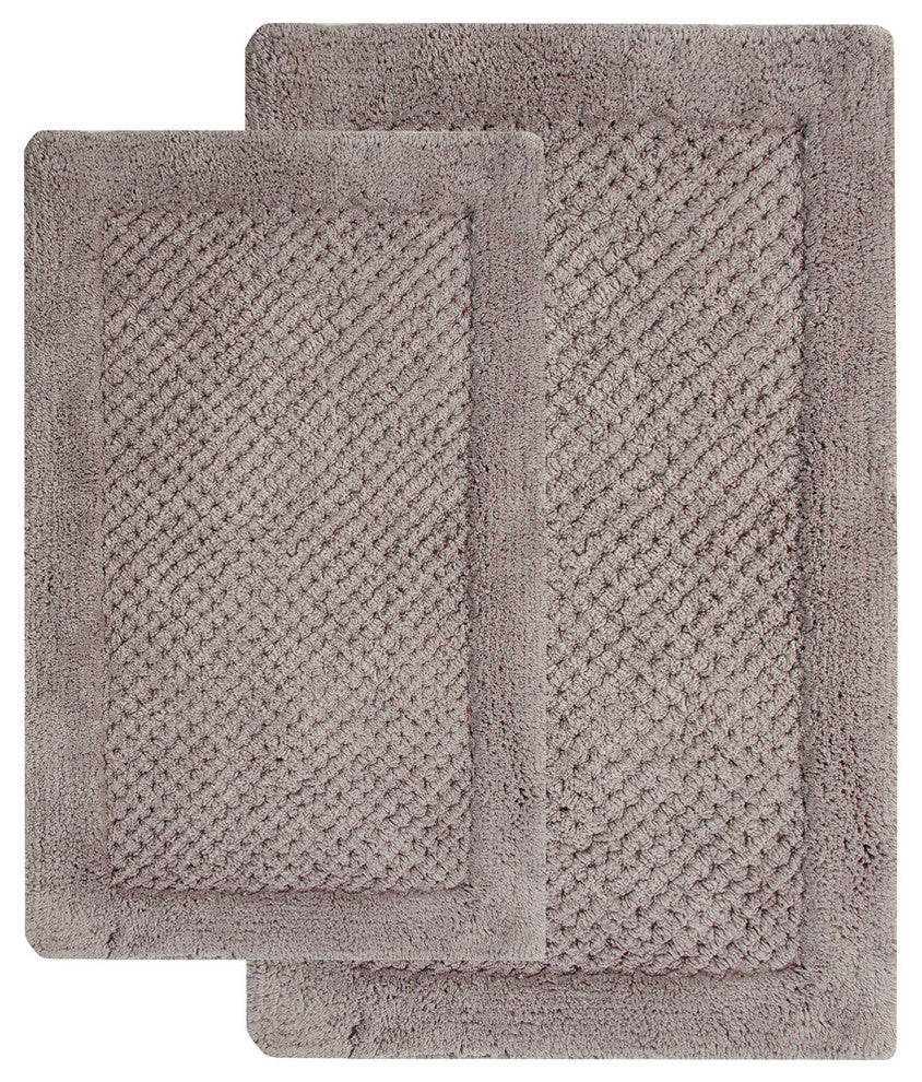 Bath Rug Cotton, 2 Piece Set, 34"x21" and 36"x24", Grey, GSF 180, Waffle