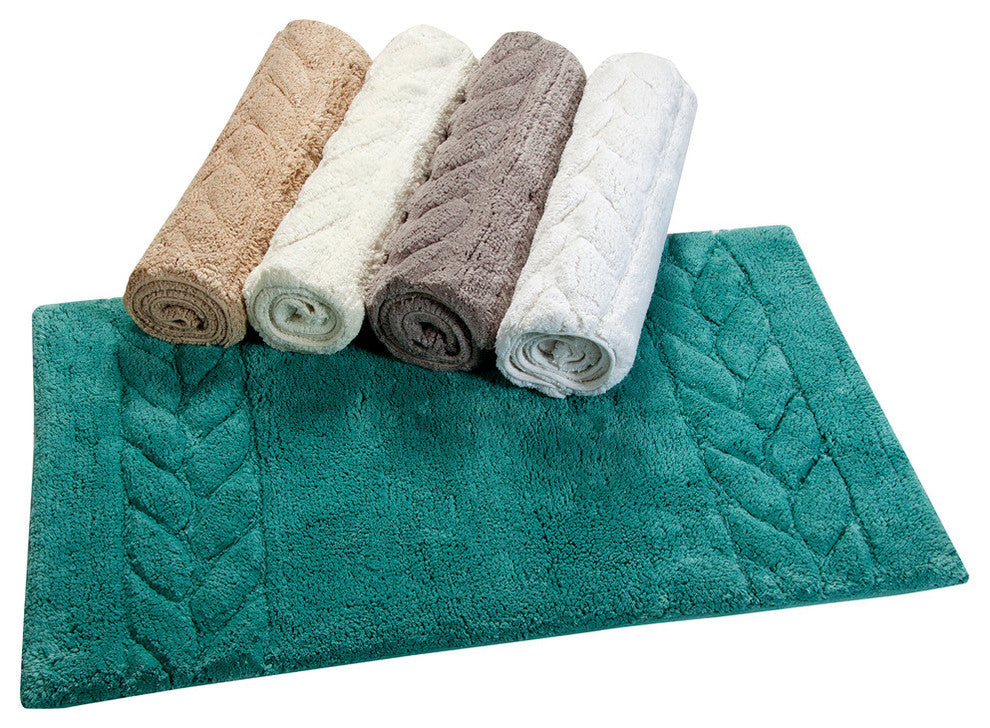 Bath Rug Cotton, 2 Piece Set, 34"x21" and 36"x24", Ivory, GSF 180, Cable