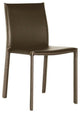 This dining chair set offers you a classy and comfortable place to sit in your dining area. The detail on these beautiful chairs is wonderful, including the contrasting stitching going down the legs of the chairs. Durable bonded leather upholstery for longer lasting use and stain resists for easy clean up. Chair constructed with sturdy steel frame lightly padded with high density foam for added comfort.Features: • Color: brown • Made of steel and bonded leather • Chair constructed with sturdy steel frame • Lightly padded with high density foam for added comfort • Durable polyurethane coated leather upholstery • Longer lasting use and stain resists for easy clean up • Seat measures 18.5 inches tall • Product Weight: 76lbsSpecifications: • Product Dimensions: 32" H x 18" W x 18" D