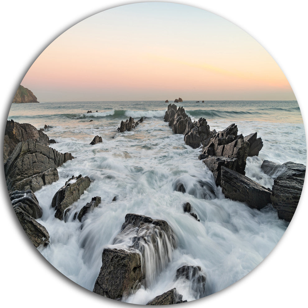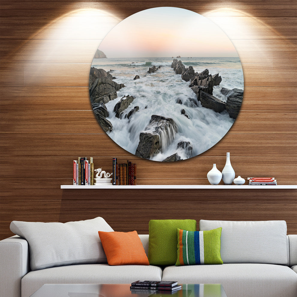 Bring Contemporary Abstraction to your home with this large Circle Metal wall art. This Bay of Biscay Spain Seashore Metal Artwork makes it the focal point of any room or office.
