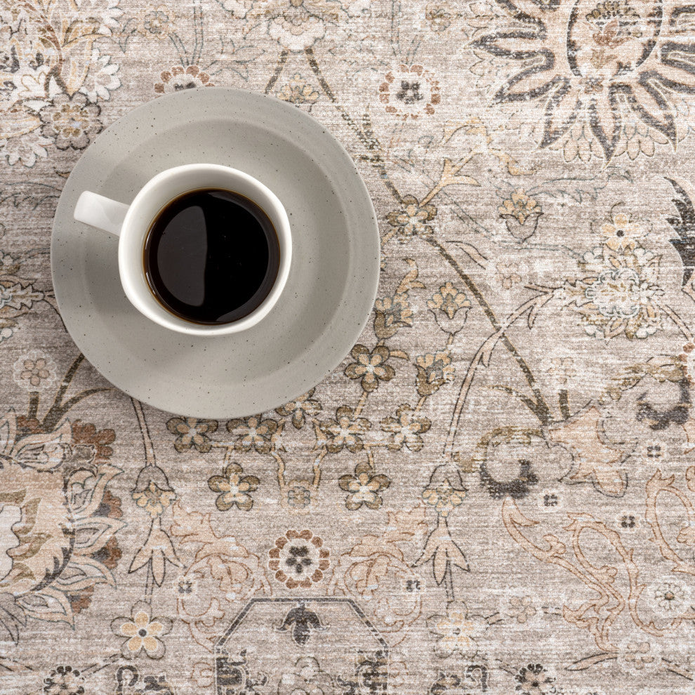 Bayberry Spill Proof Vintage Machine Washable Area Rug, Sand 2'6"x10'