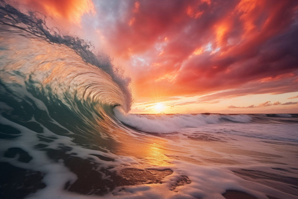 Ocean Wall Art: Crimson Coastline Photorealistic Painting Digital Artwork Loose Art PrintWitness the dramatic interplay of ocean power and twilight hues with "Crimson Coastline," a breathtaking photorealistic digital artwork. This piece captures a majestic wave as it begins to curl, reflecting the intense crimson and fiery orange and pink tones of the sunset sky. The dynamic energy of the water, contrasted with the vibrant, almost otherworldly colors above, creates a truly captivating focal point.This high-quality loose art print offers you the freedom to personalize its presentation with a frame that complements its dramatic beauty. Imagine this stunning artwork adding a bold statement to your living room, bringing an inspiring energy to your office, or creating a dramatic focal point in a bedroom. Let "Crimson Coastline" infuse your space with the raw beauty and vibrant colors of the ocean at dusk.Details:Title: Crimson CoastlineType: Loose Art Print (unframed)Subject: Ocean Wave, Sunset, SeascapeStyle: Photorealistic, Digital ArtMood: Dramatic, Vibrant, PowerfulPerfect for: Living rooms, offices, bedrooms, coastal-inspired décor, anyone who appreciates the dramatic beauty of the ocean at sunset.Please Note: This is an unframed print. You will need to purchase a frame separately. Please be aware that the colors displayed on your monitor may vary slightly from the actual print.Processing, Shipping and Returns:This unframed artwork is made especially for you as soon as you place an order, which is why it takes us a bit longer to deliver it to you. Making products on demand instead of in bulk helps reduce overproduction, so thank you for making thoughtful purchasing decisions!Returns: Super simple! No hassle return or exchange policy. You"™ll receive 100% money back if you"™re not satisfied...simply message us.