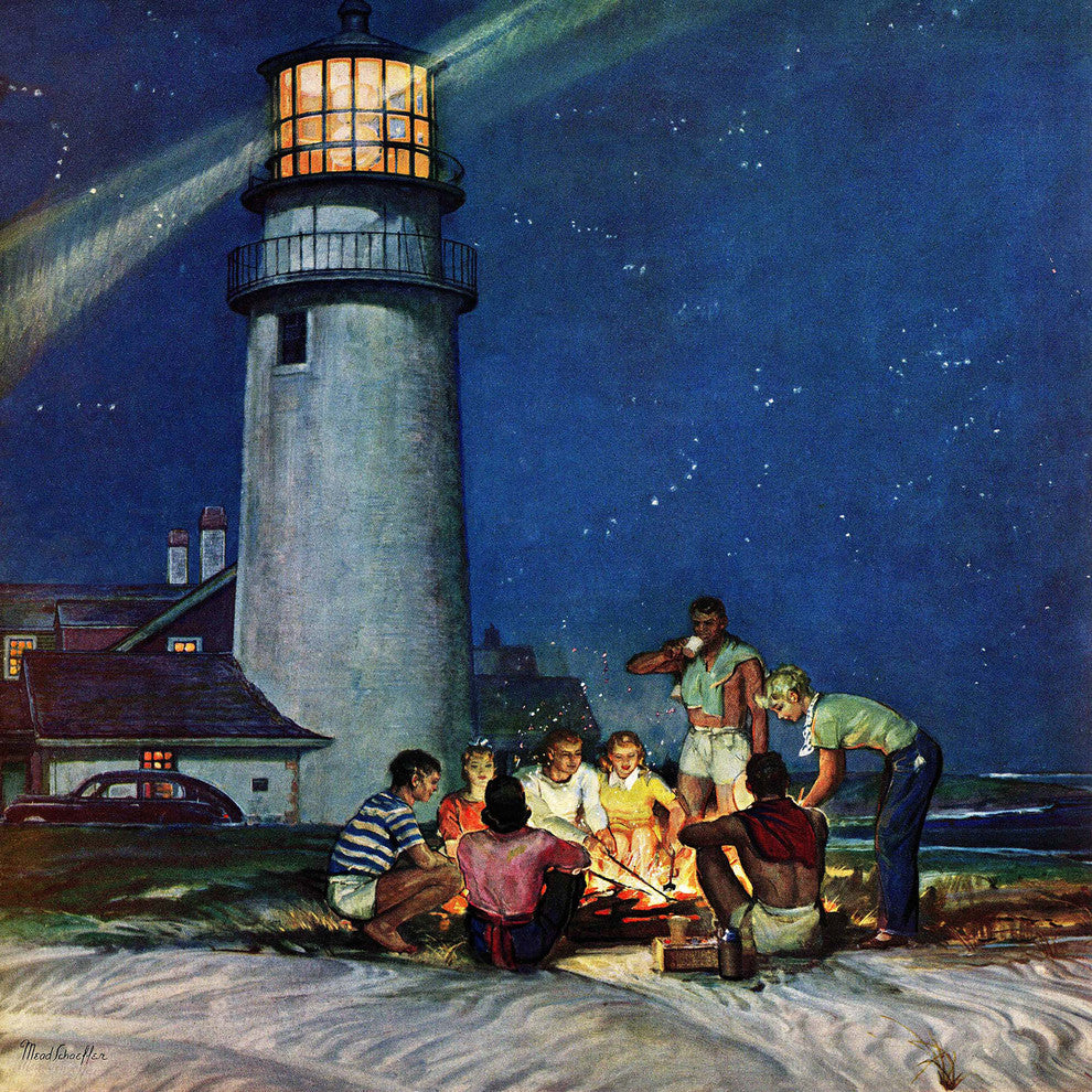 "Beach Bonfire" Painting Print on Canvas by Mead Schaeffer