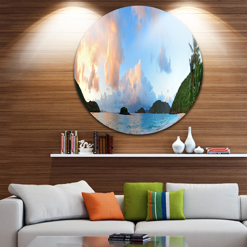 Bring Contemporary Abstraction to your home with this large Circle Metal wall art. This Beach Sunset with Clouds Metal Artwork makes it the focal point of any room or office.