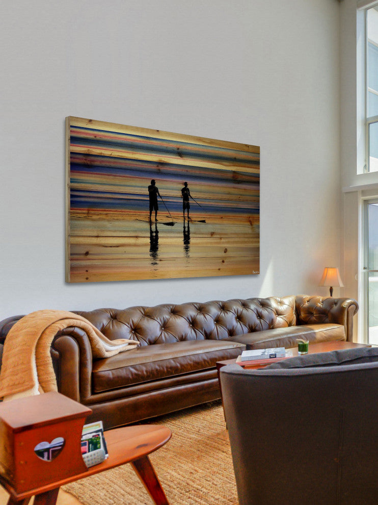 "Beach Surf" Print on Natural Pine Wood, 45"x30"