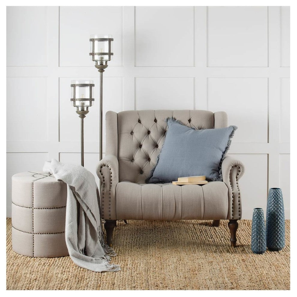 The Beacon I Ottoman is a smart-looking piece, designed with a simple cylindrical structure and sleek gray fabric upholstery. Feature this stylishly contemporary accessory in the living room as a spare seat or a place to rest your tired toes, or tuck it away in the bedroom as a vanity stool.