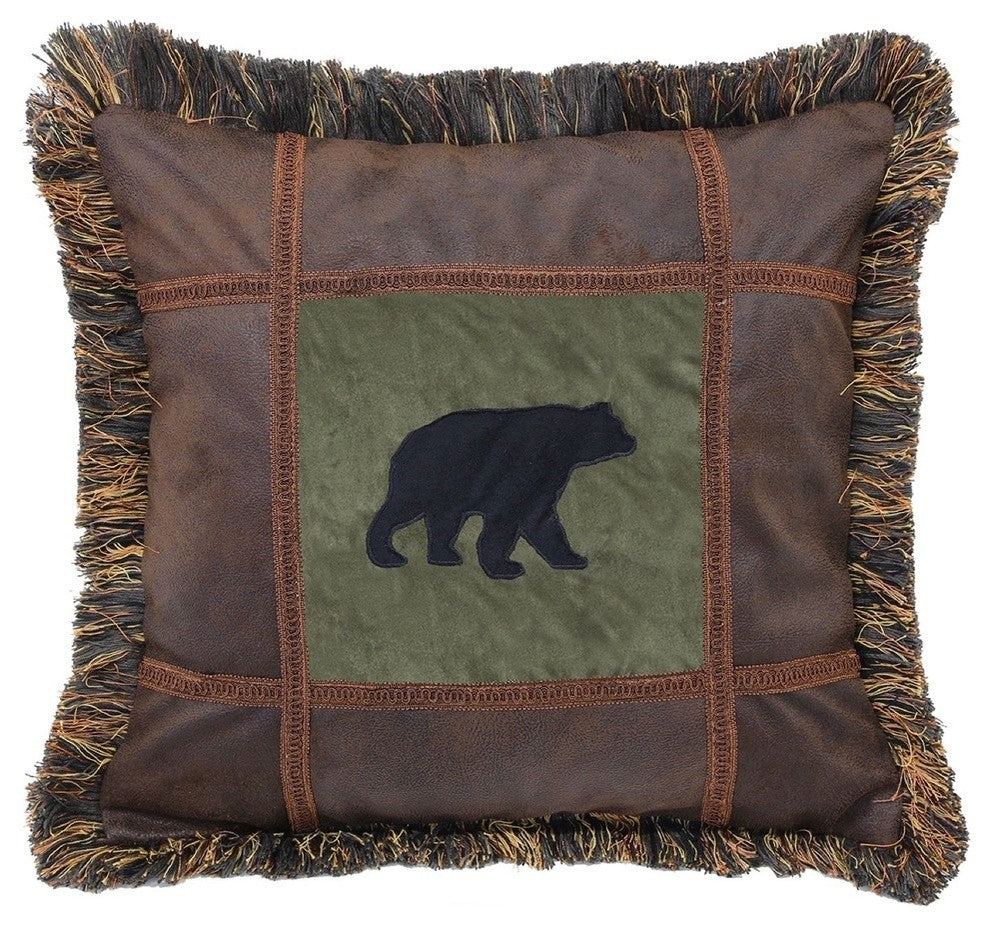 Transport yourself to a luxurious lakeside resort with the Bear on Pine Pillow from Carsten''s. This decorative pillow features stripes of warm, volcanic burgundy, glacial off-white and rich forest green that create a beautiful backdrop for the bear, moose and tree. The pillow is sure to make a charming statement on a couch, bed or bench in your home.