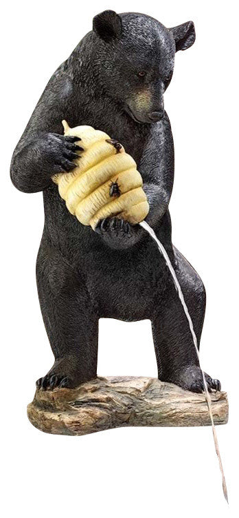 Our mischievous black bear can''t believe his own eyes, with the seemingly endless flow of sweet honey spouting from his hive! Since beauty is in the details, our Design Toscano-exclusive, hand-cast designer resin bear spitter with masterful hand-painted embellishments, is sure to bring your pond or water feature to life with its realism. Our piped statue is expertly engineered with 12 mm copper internal tubing and, with the addition of our optional pump and tube kit, will spit water to provide a focal point and also oxygenate your pond or water feature with the soothing sounds of water music. Easily accommodates our 300 GPH Pump and Tube Kit HS-75300. 16.5"Wx14.5"Dx29.5"H. 13 lbs.