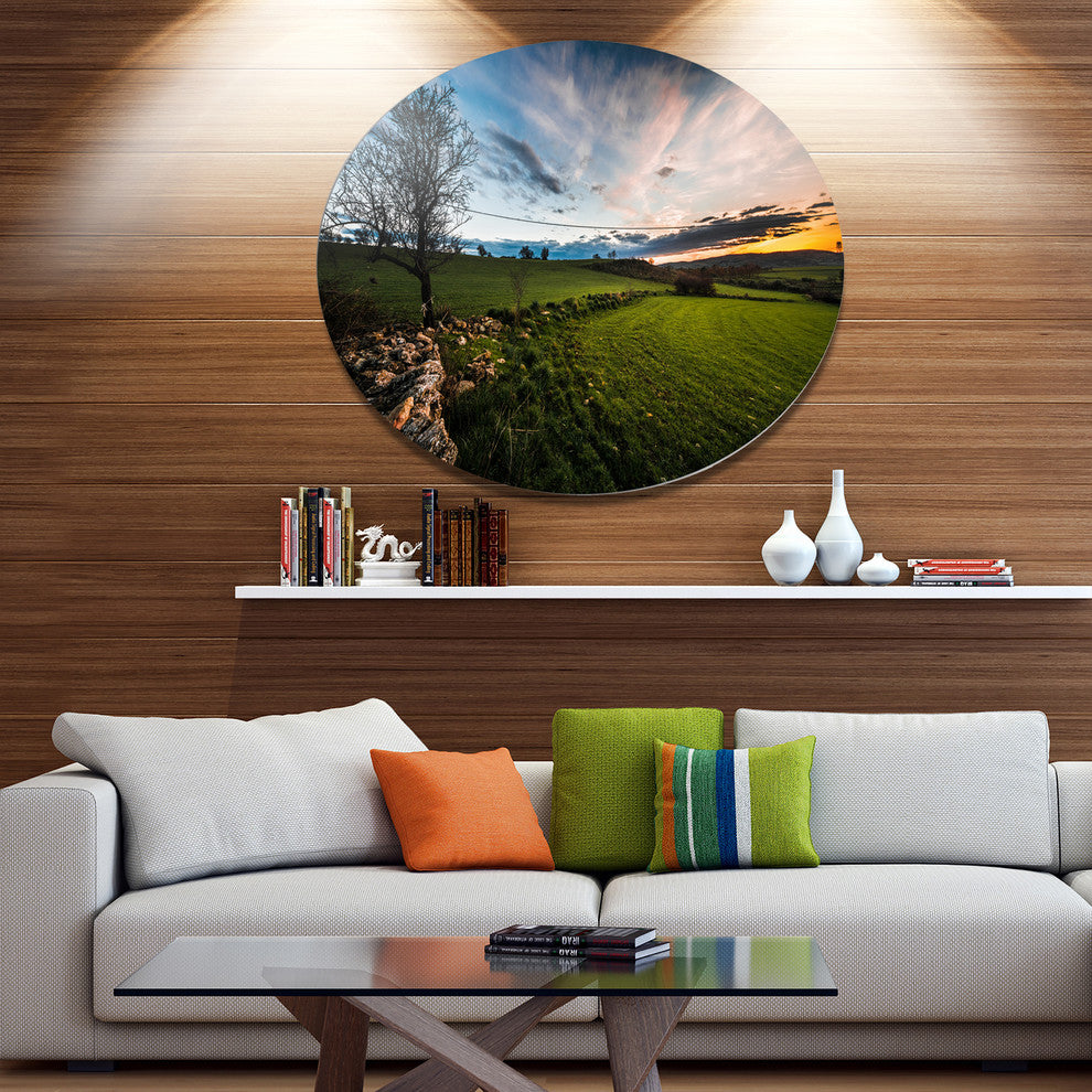 Bring Contemporary Abstraction to your home with this large Circle Metal wall art. This Beautiful Green Meadow in Sardinia Metal Artwork makes it the focal point of any room or office.