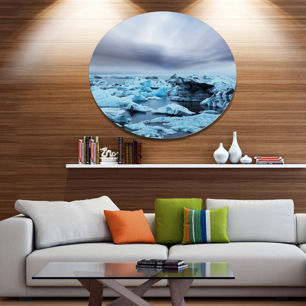 Bring Contemporary Abstraction to your home with this large Circle Metal wall art. This Beautiful Melting Glacier in Iceland Metal Artwork makes it the focal point of any room or office.