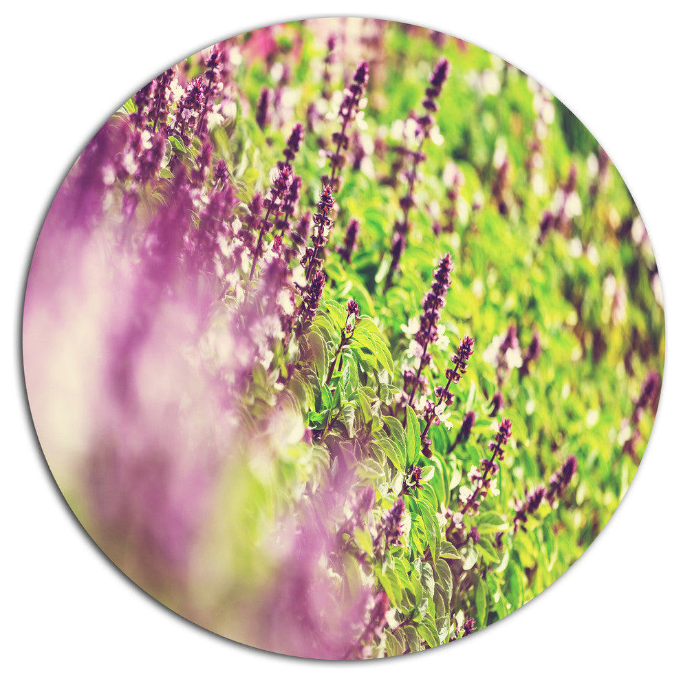 Beautiful Mint Flowers In Garden, Flower Large Disc Metal Wall Art, 11"