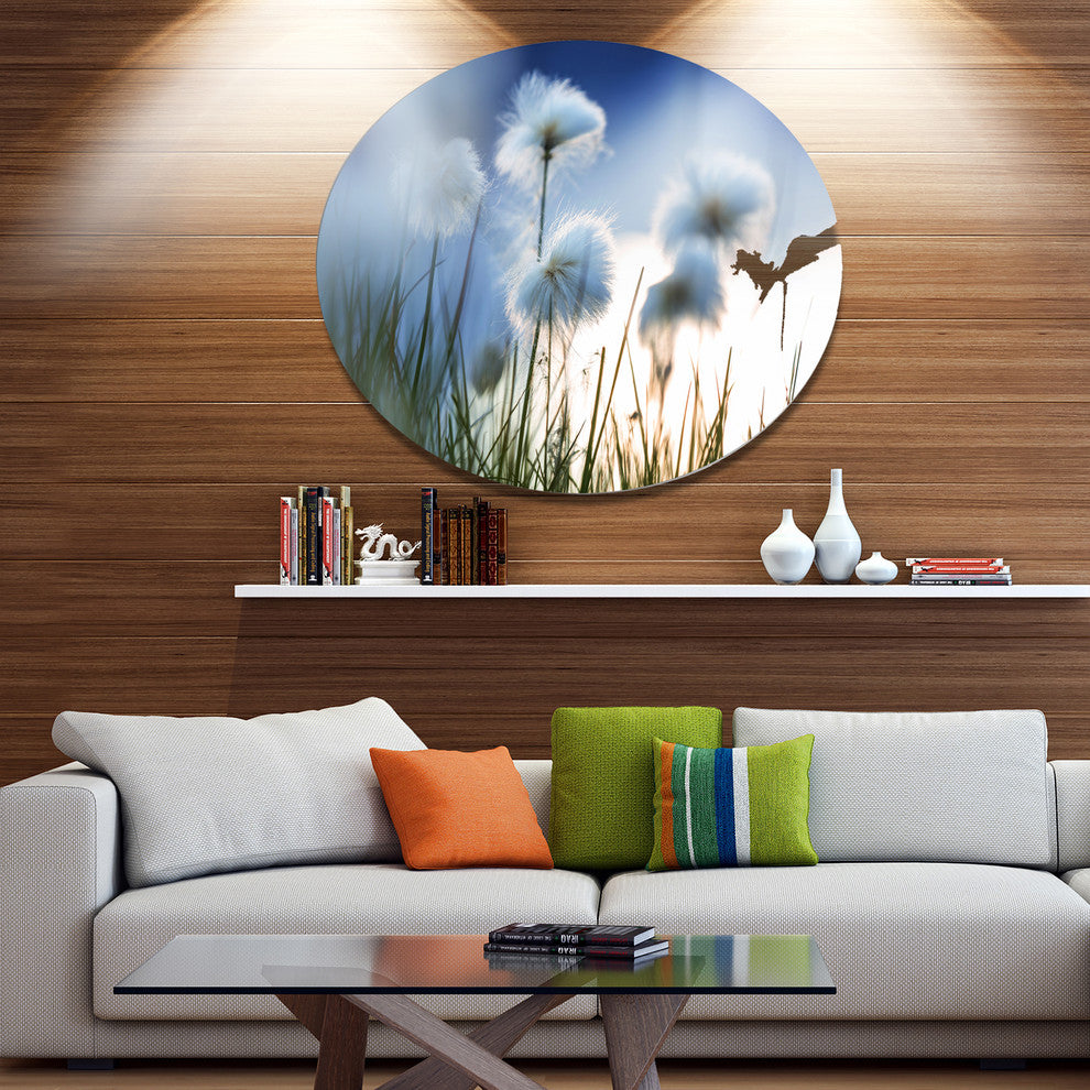 Bring Contemporary Abstraction to your home with this large Circle Metal wall art. This Beautiful Polar White Flowers Metal Artwork makes it the focal point of any room or office.