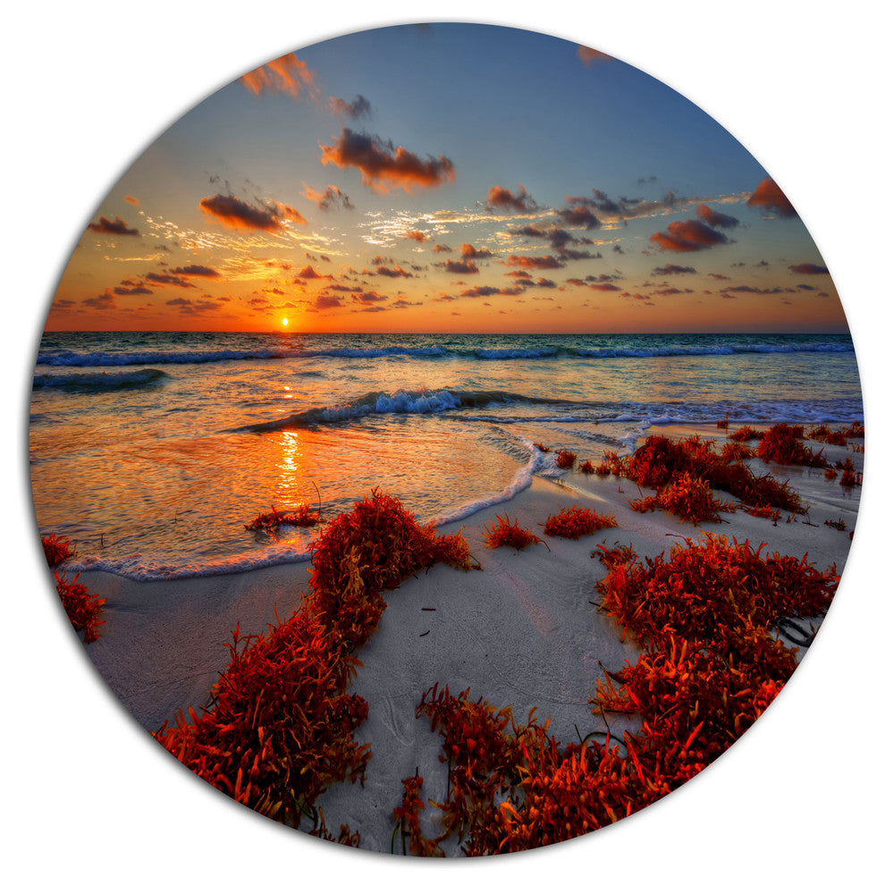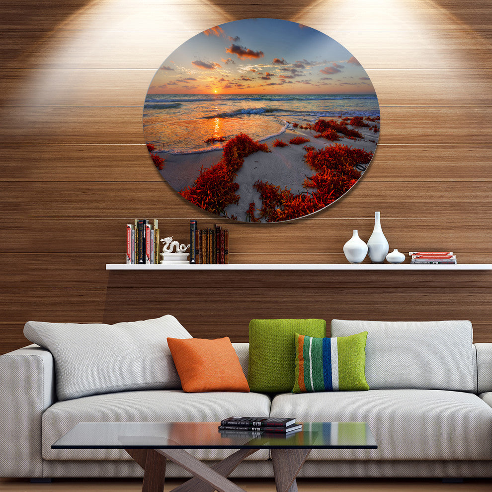 Bring Contemporary Abstraction to your home with this large Circle Metal wall art. This Beautiful Shore and Cloudy Sky Metal Artwork makes it the focal point of any room or office.