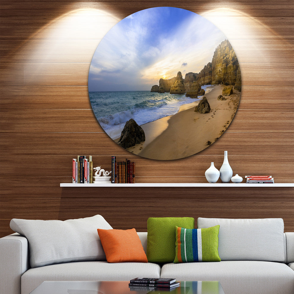 Beautiful Sunset Over Algarve Portugal, Seashore Round Wall Art, 11"