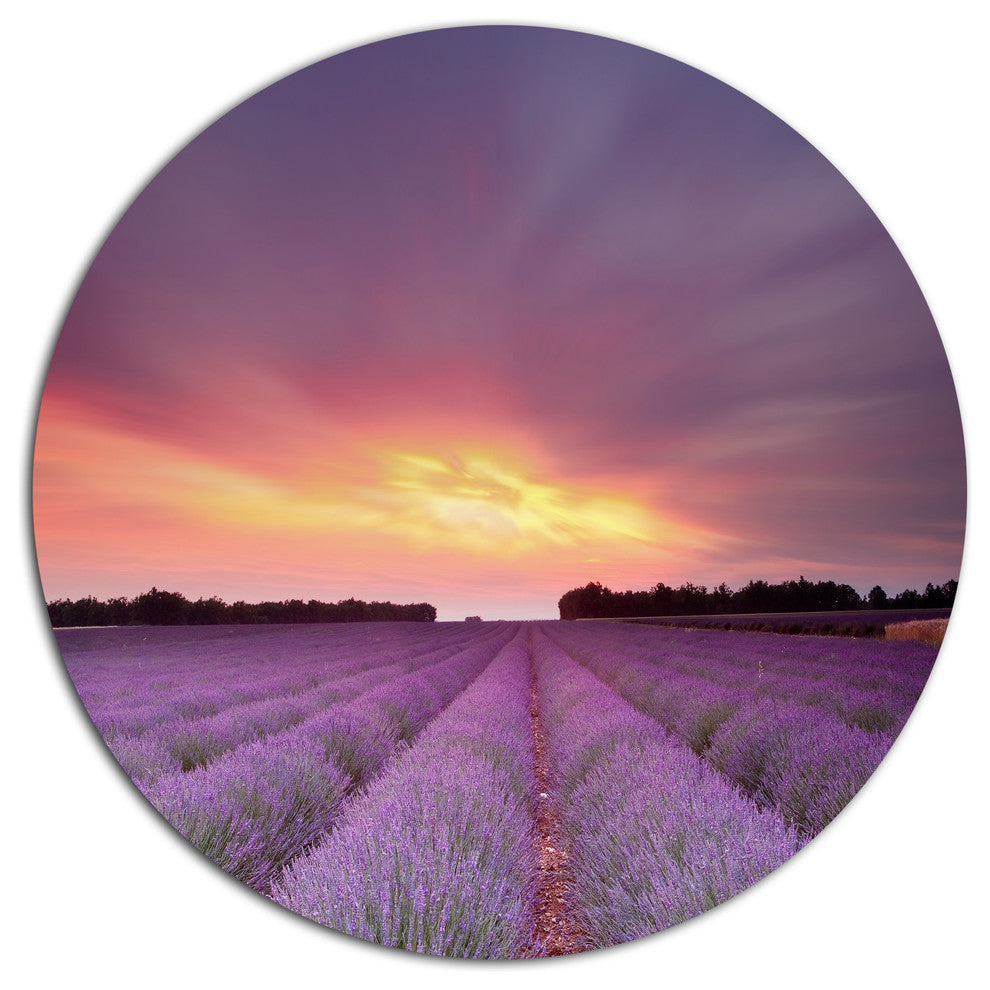 Beautiful Sunset Over Lavender Rows, Landscape Disc Metal Artwork, 23"