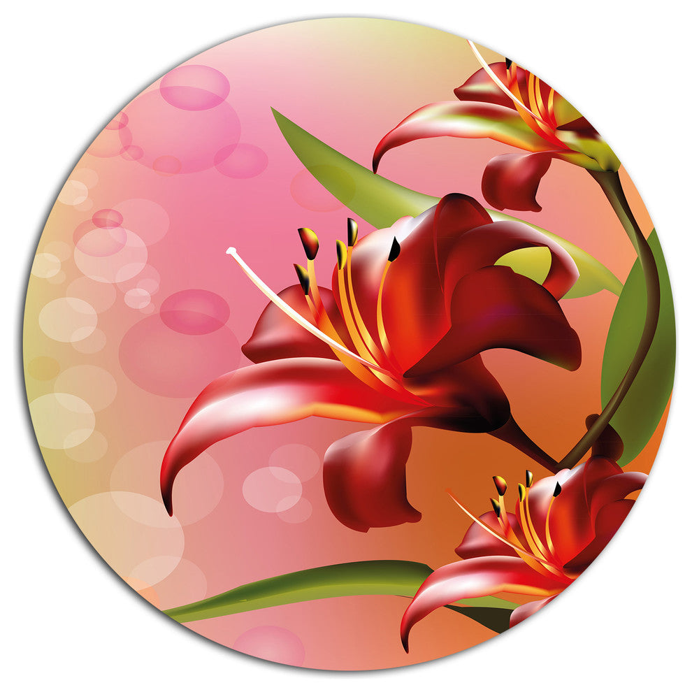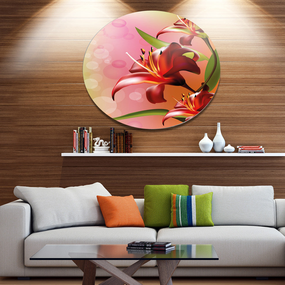 Bring Contemporary Abstraction to your home with this large Circle Metal wall art. This Beautiful Vector Flower on Pink Metal Artwork makes it the focal point of any room or office.