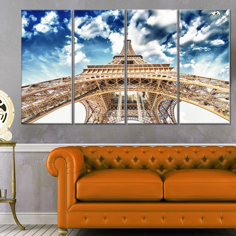 The Beautiful view of Paris Eiffel Tower under Clouds canvas art print is sure to make an impression on anyone who sees it. This artwork is gallery wrapped around a 1-inch solid wood frame and arrives carefully packaged and entirely ready to hang on the wall. Design Art only uses the highest resolution and pigments to ensure a crisp colorful print that is never faded or pixelated. This artwork is sure to be a conversation starter in any home or office.