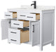 Beckett 42" White Single Vanity, Carrara Cultured Marble Top, Black Trim