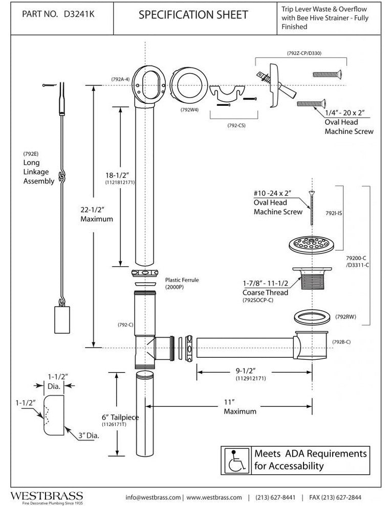 This simple to use bath drain plug from Westbrass features a trip-lever style mechanism to easily open and close your tub drain. This style is ideal for waste and overflow drainage, and uses a Gerber-style grid drain for straining. Use in all exposed locations, where all tubes and fittings are in view. Heavy 17 ga. brass tubing combine with cast brass fittings to make an overflow designed to last. Available in a variety of finishes, this item is sure to complement your existing decorative fixtures.