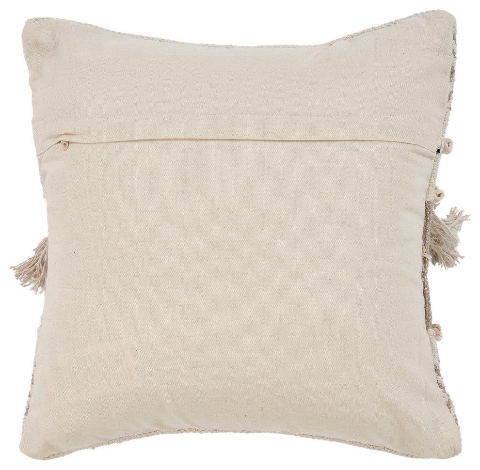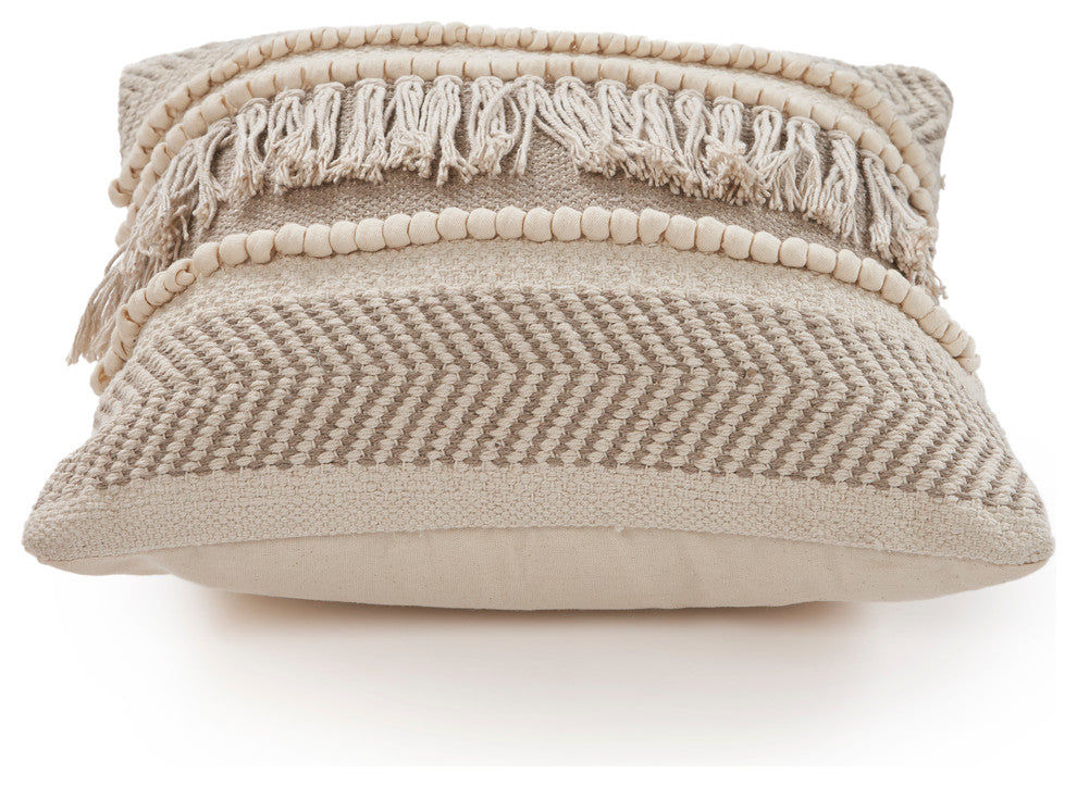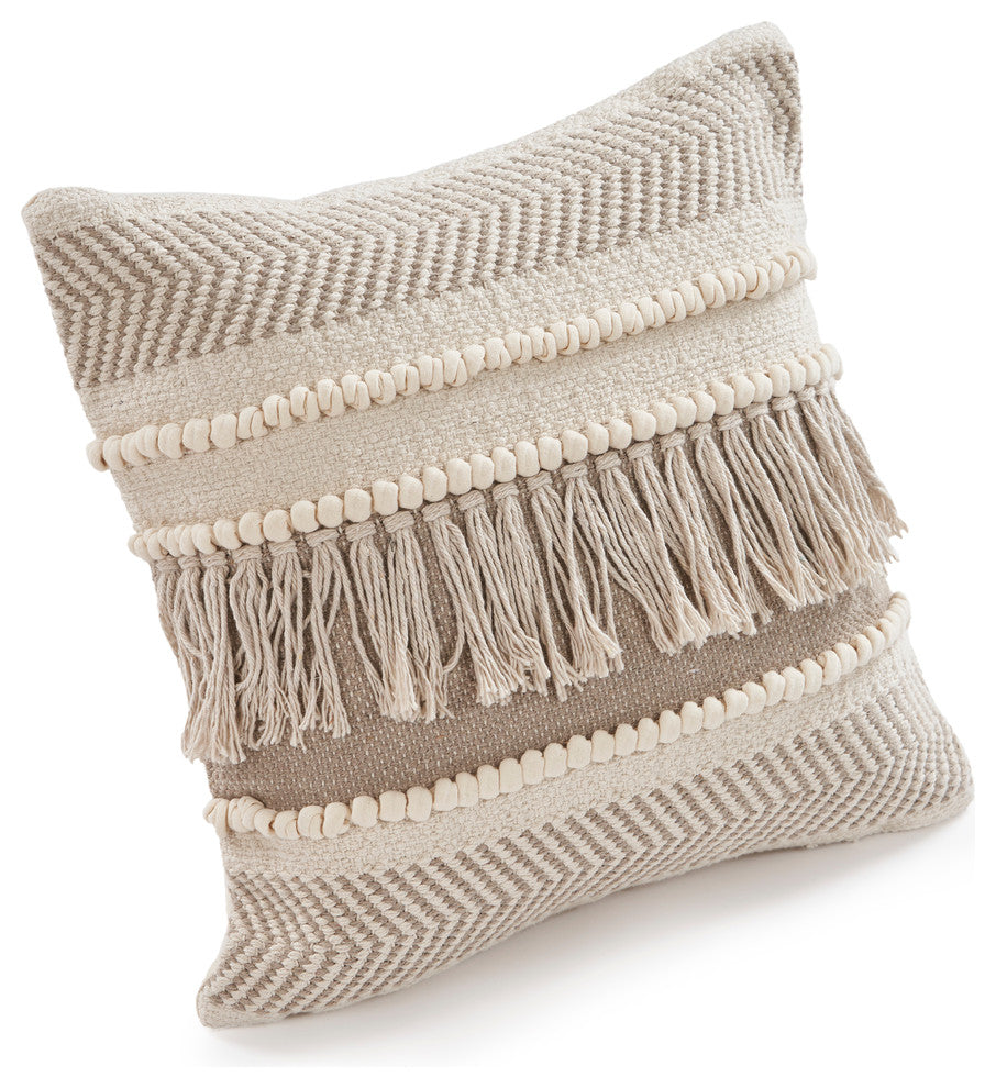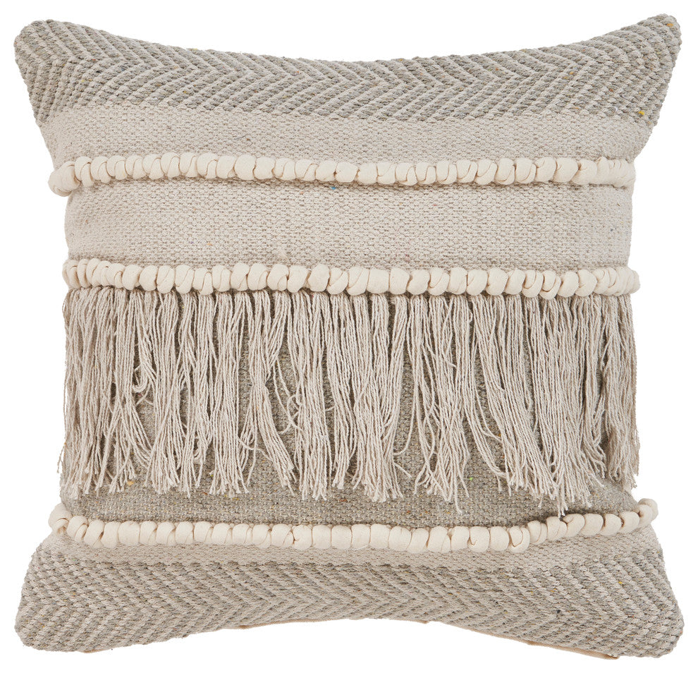 Beige and Gray Fringed Farmhouse Throw Pillow