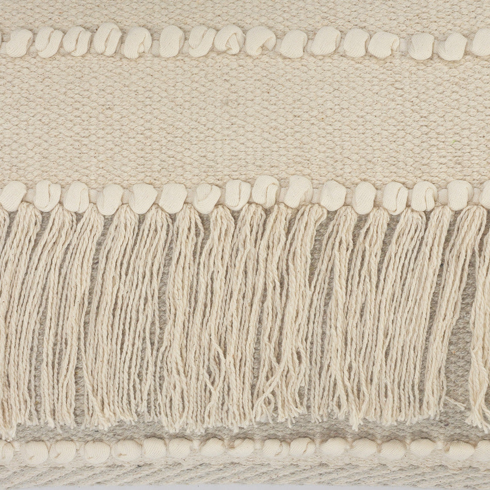 The Fringed Farmhouse Throw Pillow adds texture and comfort to any space. Handmade utilizing a variety of weaving techniques, this piece features gray chevron stripes complimented by bobble stripes and bold fringe in a neutral and distinguished color palette. A covered zipper on the back allows for easy removal of the insert for cleaning.