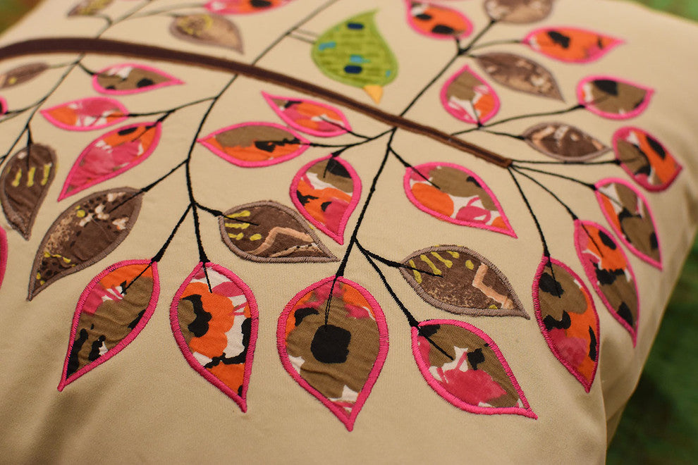 The Tree of Life branching up to the sky with and its roots in the earth, this all natural beige decorative pillow cover offers a dramatic yet spiritual accent to any room. The entire twill cotton base of the pillow is overlaid with applique and embroidery work, creating an extraordinary show piece for your decor. This is world-class workmanship created to enhance your world with dynamic color and uniqye stylized motifs. Composition: 100% Fine Twill CottonSize: 18"³ x 18"³ (45cm x 45cm)Backing: Same base fabric on back with zipper fasteningPillow Insert not Included (Only Cover is on Sale)Handmade in Village Cottage Units Such a stand-out accent pillow will draw lots of attention and provide inspiration . Uniquely handcrafted this accent pillow cover will make an exceptional addition to your beautiful home or refresh your patio with the inclusion of this stand out pillow. These unique artwork pillows would bring together the artistic elements of any room, creating a harmonious design and perfect air of sophistication.The eye-popping color and pattern of this modern throw pillow is just what the designer ordered to create a fiery focal point in your décor. Perfect wherever you need a splash of color, this art work pillow creation is as durable as it is beautiful. Easy to care for, this cushion cover could spark up an old throw pillow or grace a new pillow form.