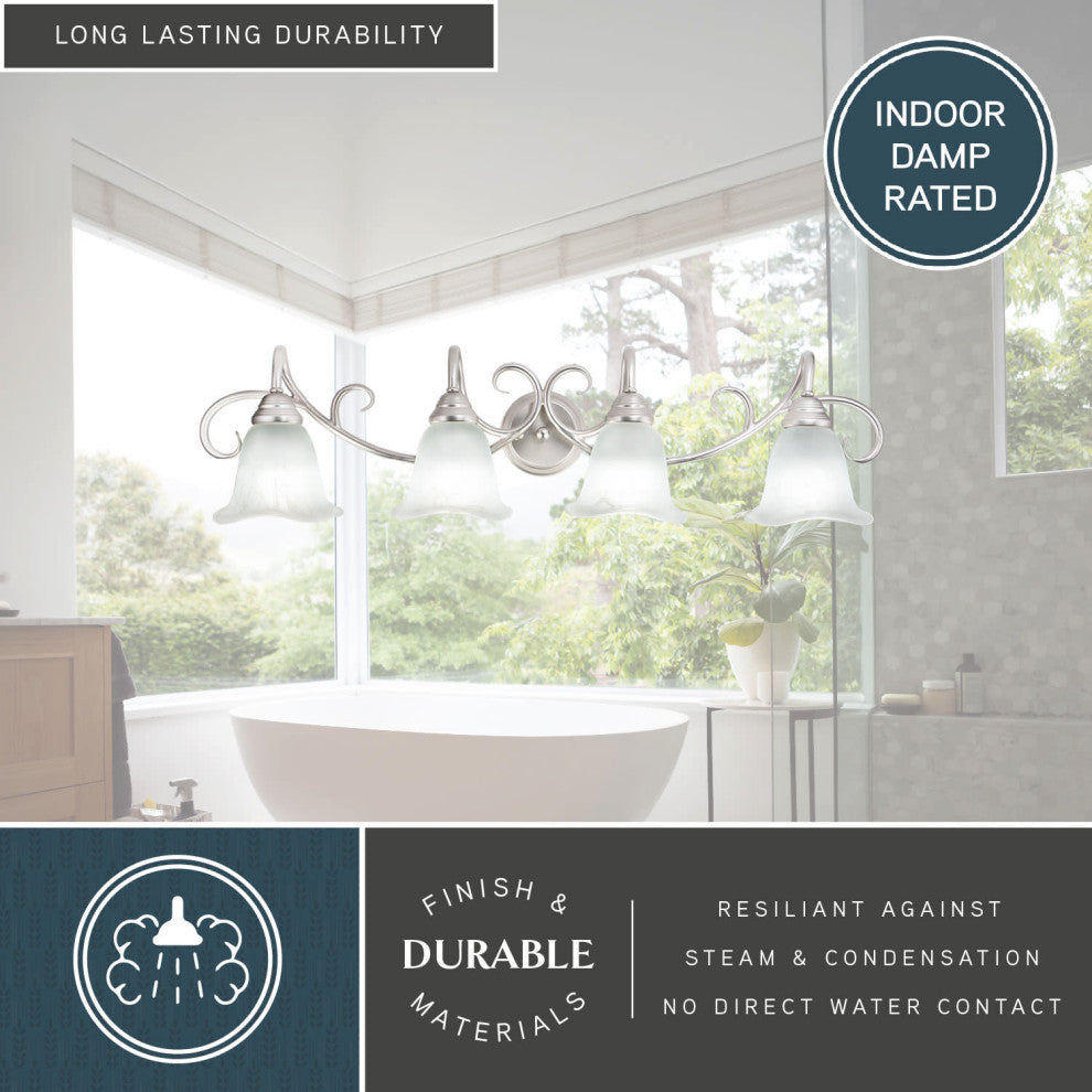 Bella 4-Light Vanity Brushed Nickel with Alabaster Glass
