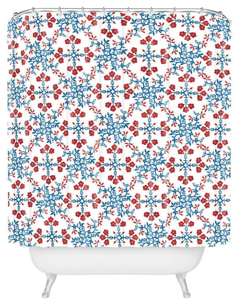 Belle13 Retro Floral Pattern Shower Curtain, 72"x69"