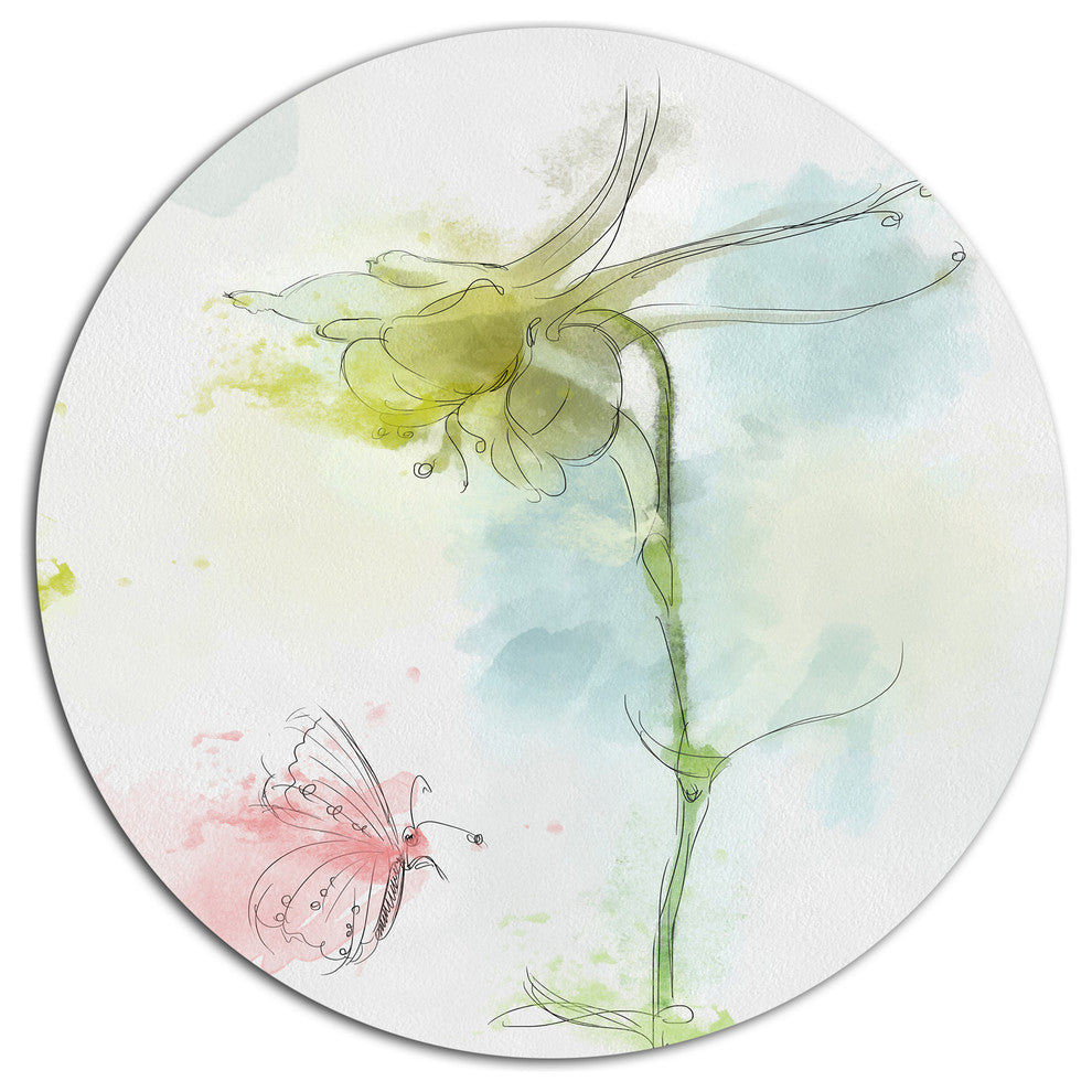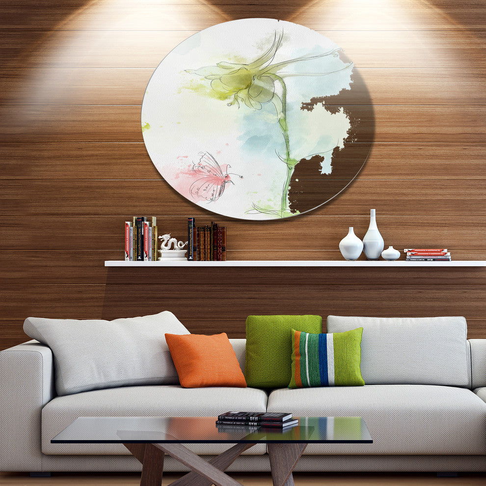 Bring Contemporary Abstraction to your home with this large Circle Metal wall art. This Bellflower Sketch and Butterfly Metal Artwork makes it the focal point of any room or office.