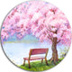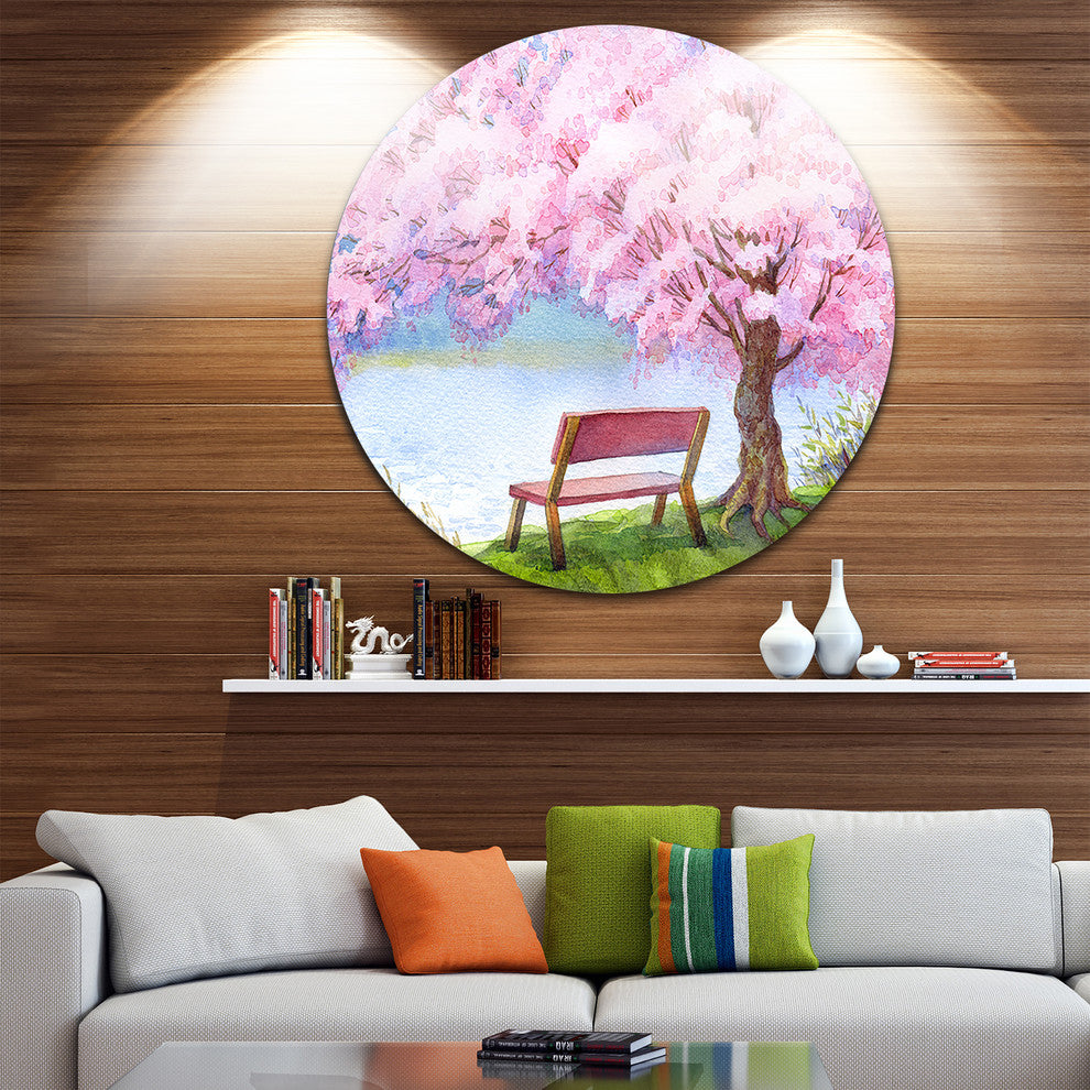 Bench Under Flowering Peach Tree, Floral Round Wall Art, 23"