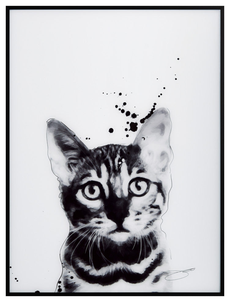 "Bengal Cat" Black and White Pet Paintings on Printed Glass with Anodized Frame