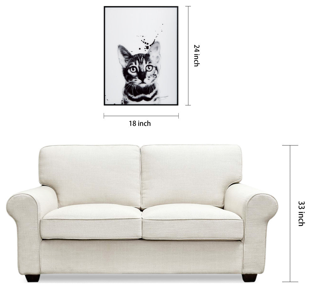 Like its big cat ancestor, the bengal cat holds itself in high regard. Her striking stripes are stunningly contrasted in this black and white print. Don''t let her innocent look fool you, she has a feisty side and is not afraid to show it. The cat portrait features a light splatter and outline, adding edge and standout details. By artist Jodi P., this cute pet picture is lightweight and ready to hang. At 24" x 18" x 1", your favorite animal can be immortalized in your home or office. Beautiful Bengal is part of our Printed Art Glass Collection, it is minimally framed with black anodized aluminum.