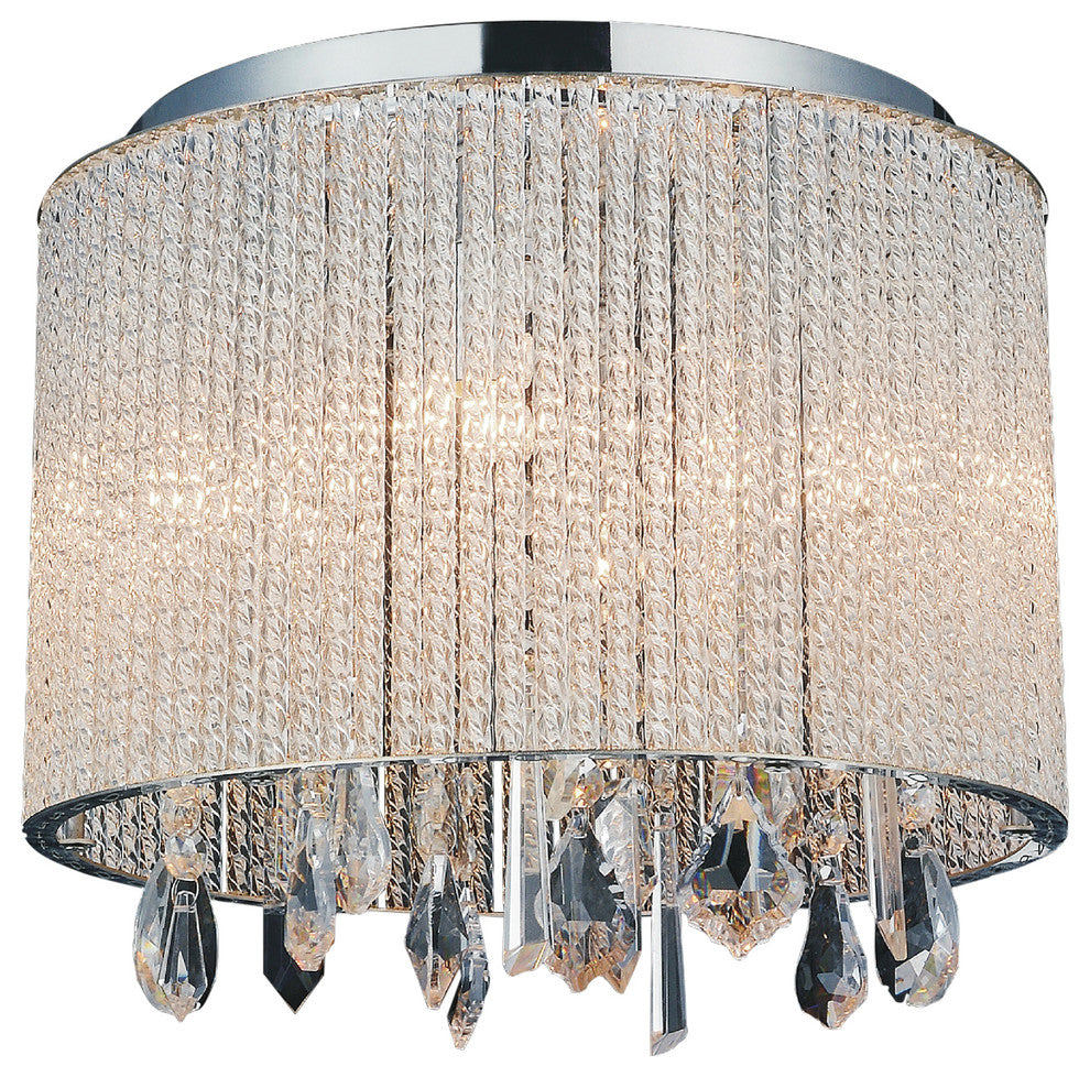 Spoil your home today with the Benson 4 Light Flush Mount. On a chrome ceiling plate is a shade made-up of extra slender clear crystal tubes. Underneath are four bulbs and dangling faceted crystals of varying shapes. Mounted close to the wall, this compact light source optimizes headspace while delivering necessary light. Replace that bland and boring light fixture today with this simple yet opulent crystal drum shade.